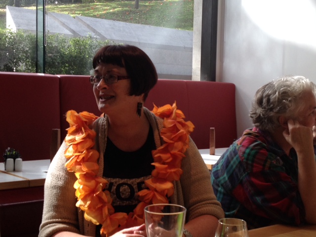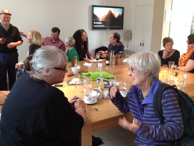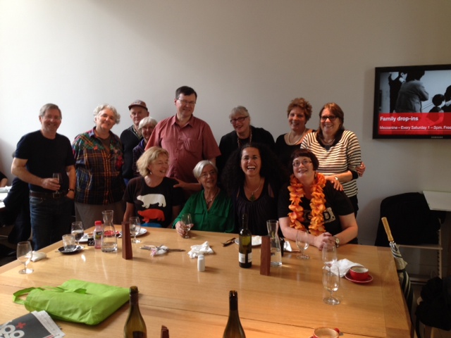 Today we had a poets’ lunch at Auckland Art Gallery Cafe to farewell Christine O’Brien. It was wonderful to all come together as the AUP poetry family and pay tribute to someone who is a storehouse of knowledge and experience. The weather outside was a mix (typical Auckland!) of sun and showers and I guess that was how we all felt. Christine has been a dedicated supporter of NZ poetry, has been at so many of our launches, and distributed vital poetry news for a number of years in her poetry newsletter. We will most definitely miss her, but we wish all the best in her next choices. Selina got us all singing a waiata which was just wonderful. Arohanui, Christine. xxx