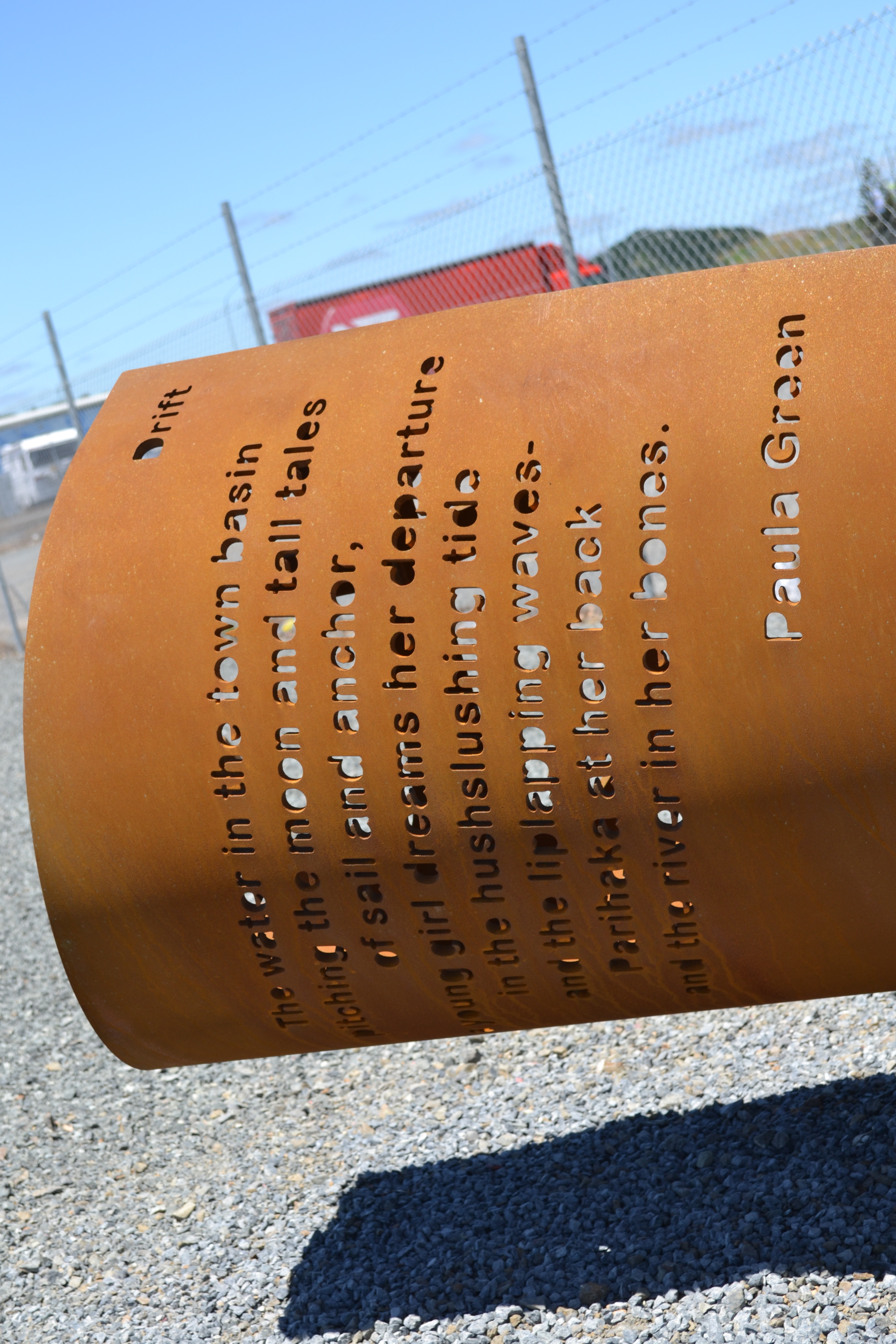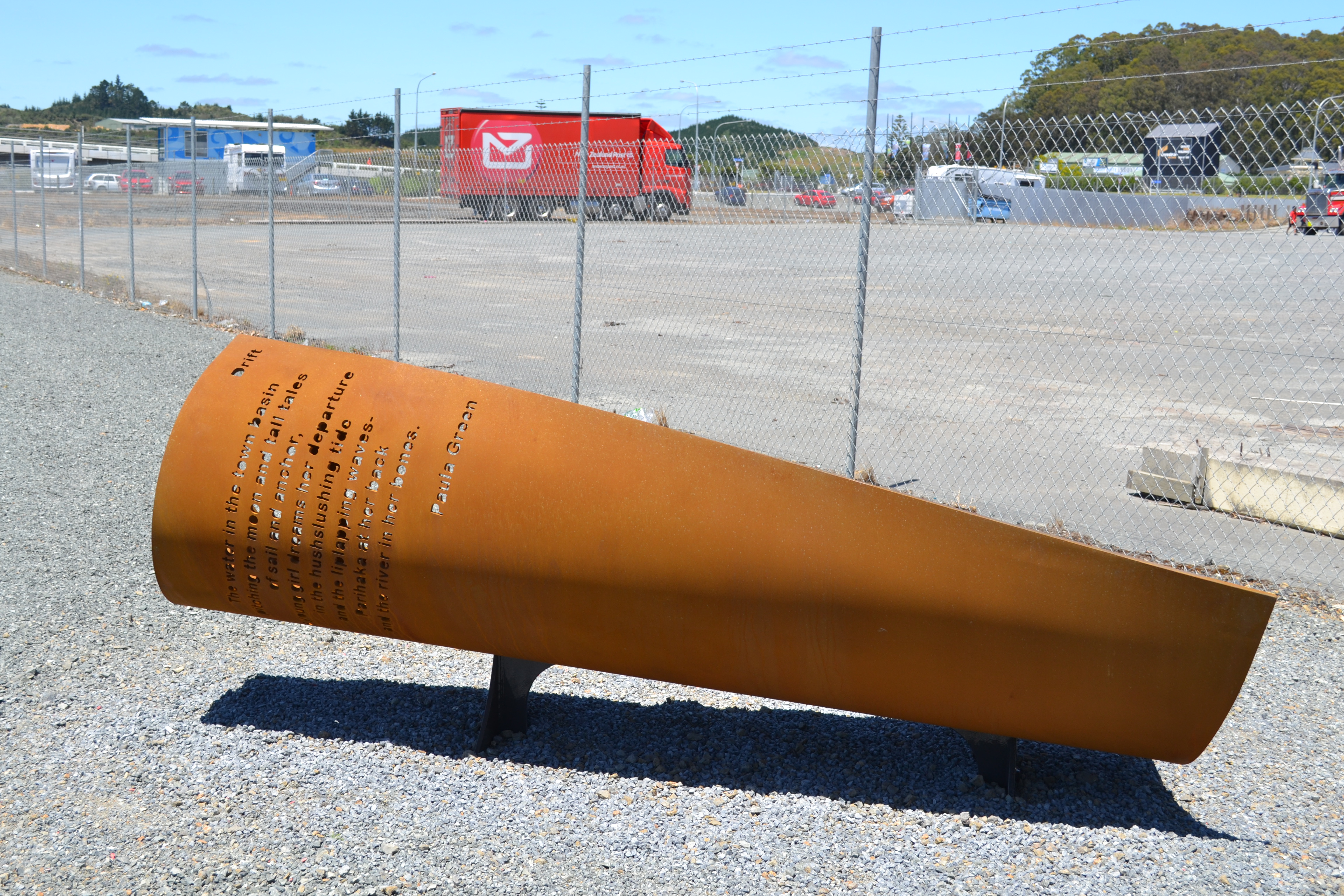 Yesterday Michael and I drove up to Whangarei with our dog Molly for the blessing of a sculpture. Thanks to Creative Northland, my poem, ‘Drift’,’ has been transformed into a steel sculpture by Miriam Von Mulert and the local firm, Culham Engineering.