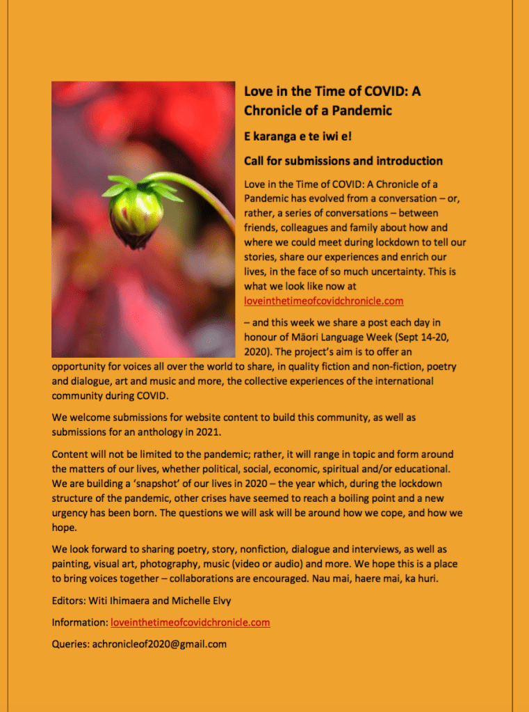 A week celebrating te reo Māori is a wonderful thing. A year boosting it even more so. A decade, a lifetime. Language is so important. We are what we speak. Just as our multiple stories are important. That 17 year old young woman is carried inside me, now that I am an older woman, and it feels like I am being invited into the language nest. With small steps, without wanting to speak over or take over, I feel this warm and encouraging embrace. I will make mistakes, I will hear the rōreka, the kõrero. I feel my way as the seeds of a language are planted. Tēnã koutou.