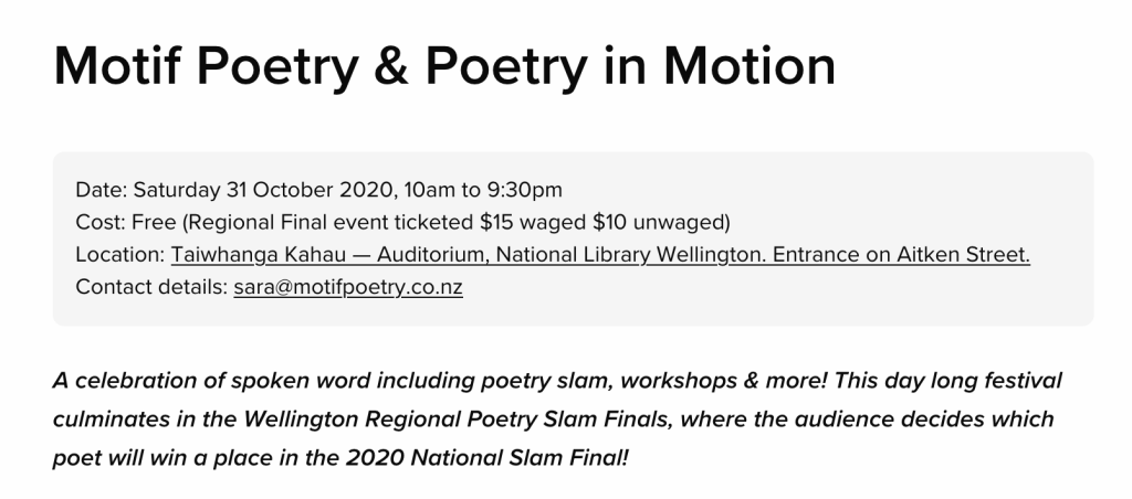 Poetry Shelf noticeboard: Wellington Festival of Slam