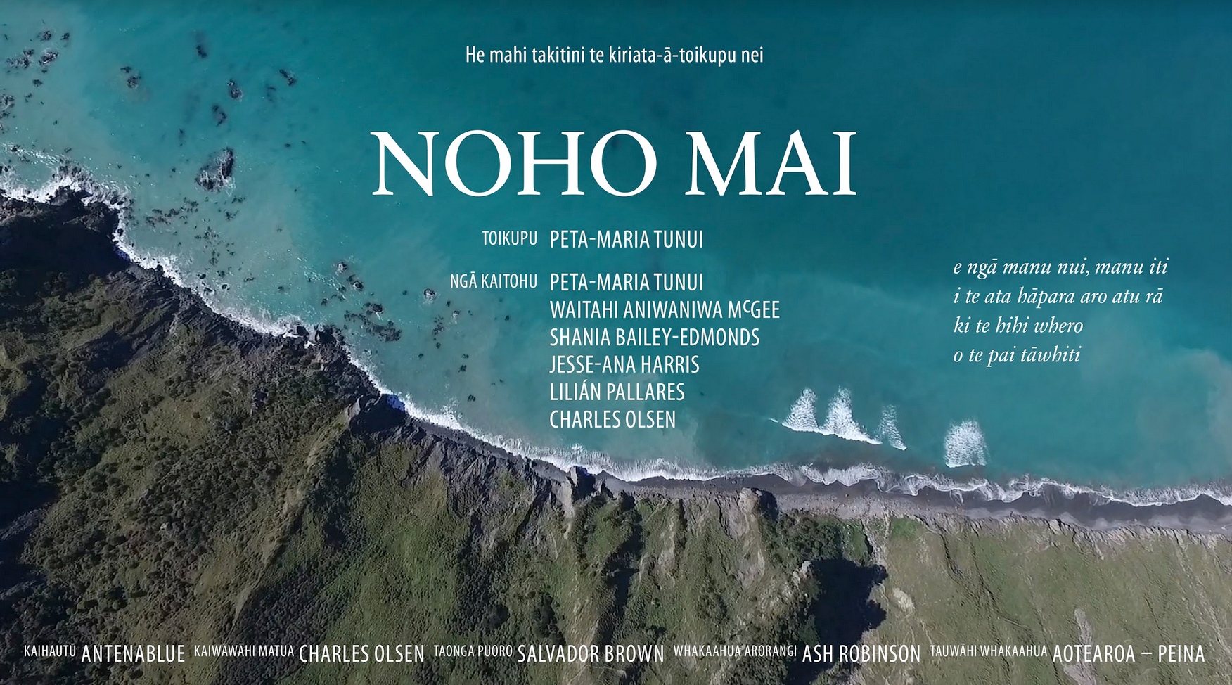 DIRECTORS Peta-Maria Tunui, Waitahi Aniwaniwa McGee, Shania Bailey-Edmonds, Jesse-Ana Harris, Lilián Pallares, Charles Olsen POEM Peta-Maria Tunui VOICE Shania Bailey-Edmonds ACTORS Shania Bailey-Edmonds, Peta-Maria Tunui, Jesse-Ana Harris, Charles Olsen EDITOR Charles Olsen PRODUCER Antenablue FIELD CAMERAS Waitahi Aniwaniwa McGee, Ikey Ihaka Tunui, Charles Olsen AERIAL CAMERA Ash Robinson TAONGA PUORO Salvador Brown COLOMBIAN GAITA Charles Olsen KARANGA Peta-Maria Tunui SOUND MIX Charles Olsen ENGLISH TRANSLATION Peta-Maria Tunui FILMED IN Aotearoa–New Zealand: Te Whanganui-a-Tara, Waitaha, Te Tai Rāwhiti, and Spain: Madrid, Soria