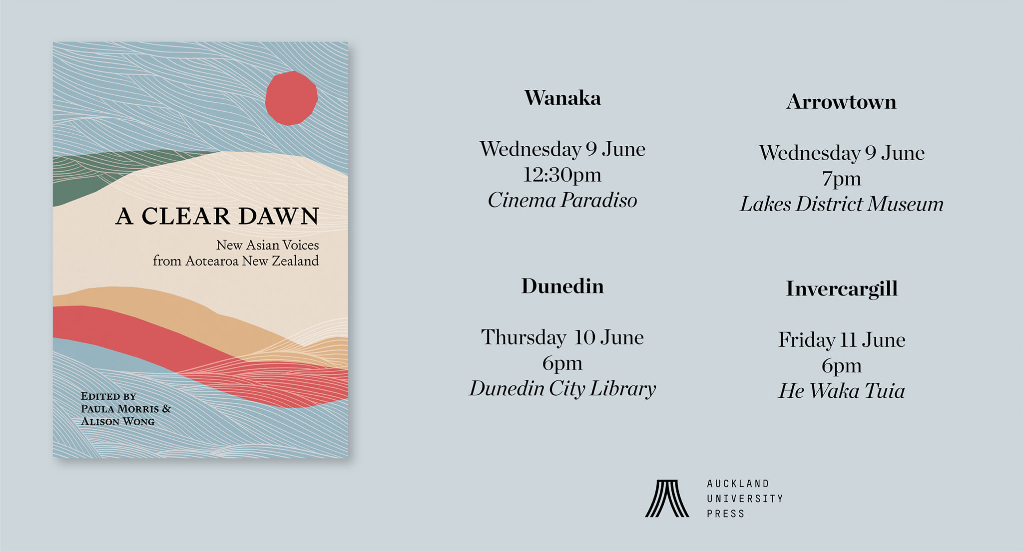 This week Alison Wong and Paula Morris are taking A Clear Dawn on a tour of the South Island! If you’re in Wanaka, Arrowtown, Dunedin or Invercargill, we’d love you to join us in celebrating this landmark anthology. Everyone is welcome and more event details can be found here