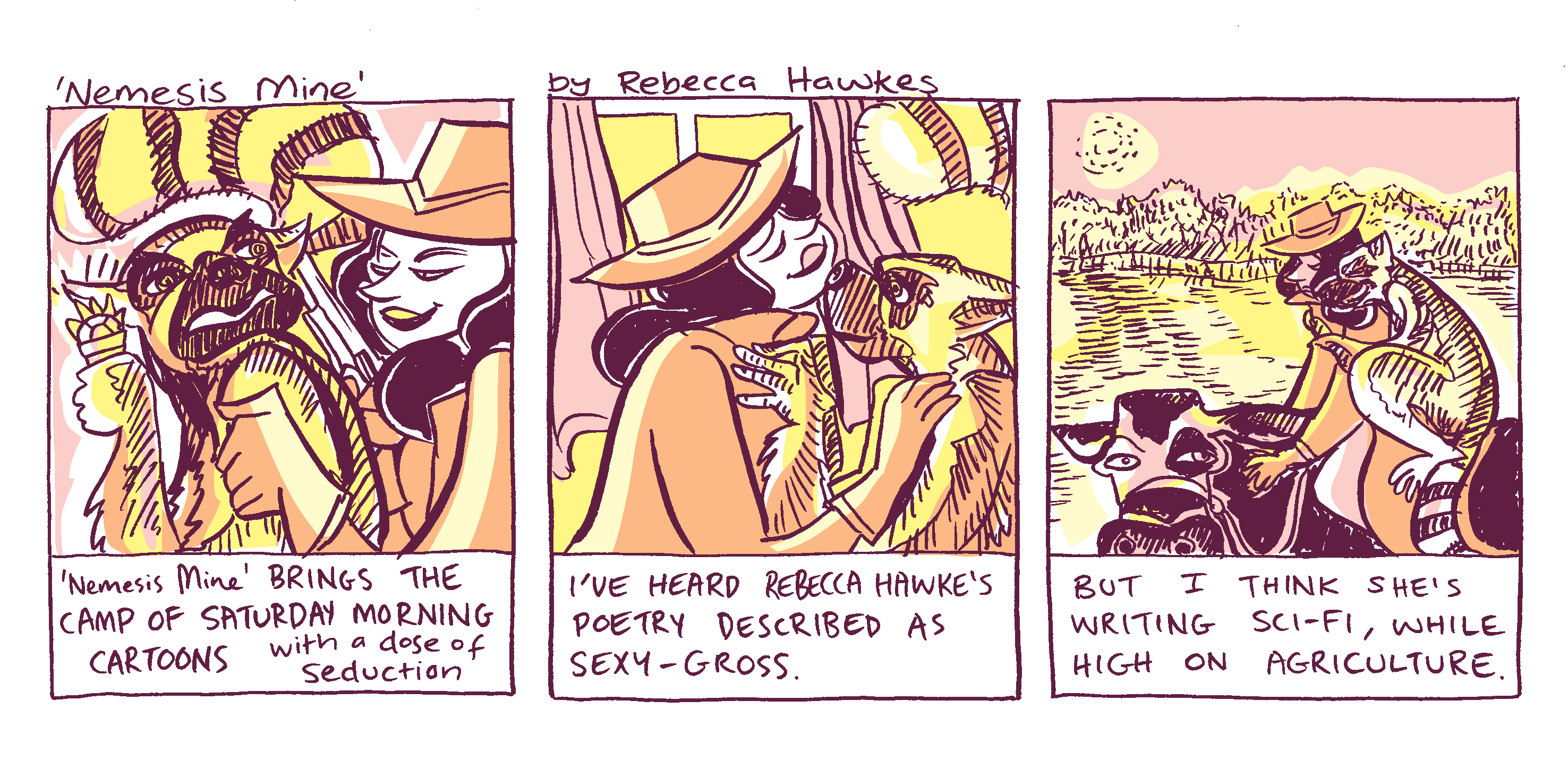 Rebecca Hawkes is a queer pākehā poet, painter, and PowerPoint slide ghostwriter living in Te-Whanganui-a-Tara. Her chapbook ‘Softcore coldsores’ can be found in AUP New Poets 5. She is co-editor of the journal Sweet Mammalian and an upcoming anthology of climate change poetry, and is a founding member of popstar performance posse Show Ponies. More of Rebecca’s writing and paintings can be found in journals like Starling, Sport, Scum, and Stasis, or online at her vanity mirror.