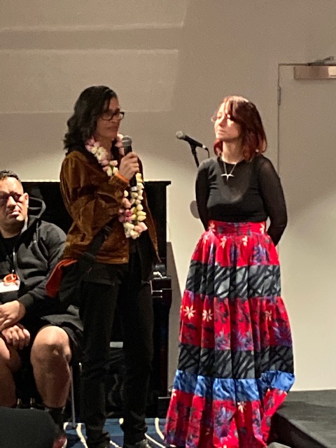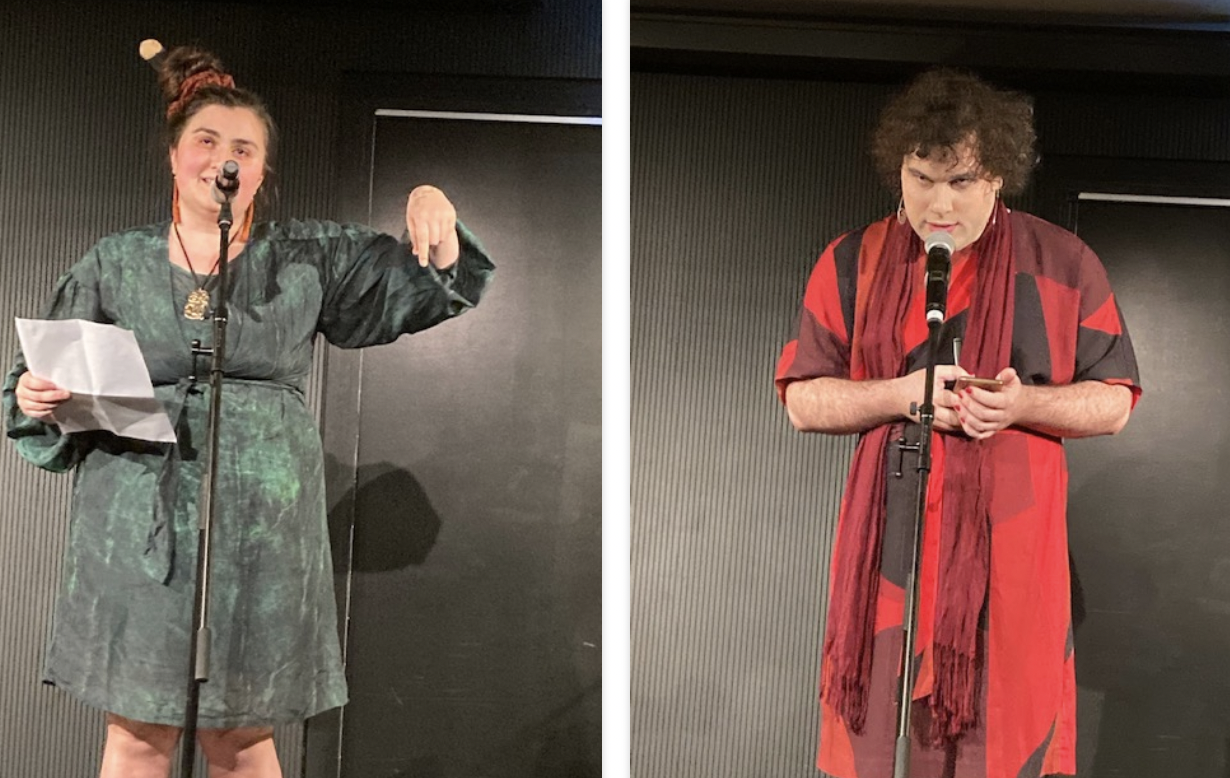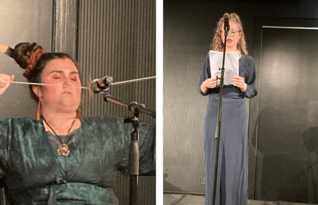 The AWF programme announced this event: ‘An exceptional evening performance that brings together celebrated writers and taonga puroro practitioners in a lyrical weaving of language and song. Writers Arihia Latham, Anahera Gildea, Becky Manawatu, essa may ranapiri and Tusiata Avia joined poet/musicians Ruby Solly and Ariana Tikao. The session was curated by Ruby as part of her Ora series.