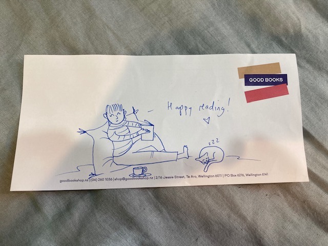 Over the past four months, books, podcasts and tv series have been my ticket out of lockdown gloom and anxiety. Add in cooking, jigsaw puzzles and gardening, along with writing and blogging, well life has been surprisingly good. I have had numerous deliveries from the excellent Good Books in Wellington, and love how they add a message or drawing, plus what the staff member is reading. I can now add Auckland bookshops to my delivery mix again, and risk rare trips to the city. Books have been my anchors, hot-air balloons, sweet escape hatches.