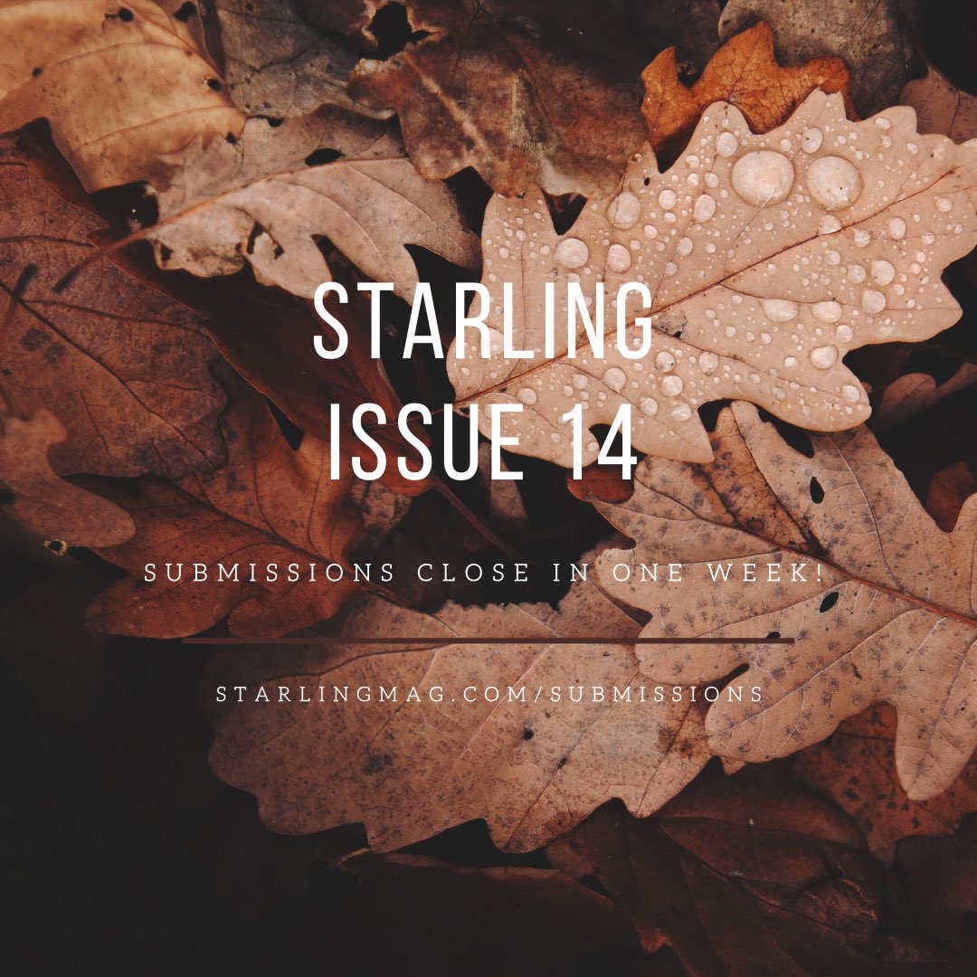 There’s one week left to submit for the winter issue of Starling! New Zealand writers under 25, send us your new work by 20 April 2022 to be considered – full submission guidelines can be found here.