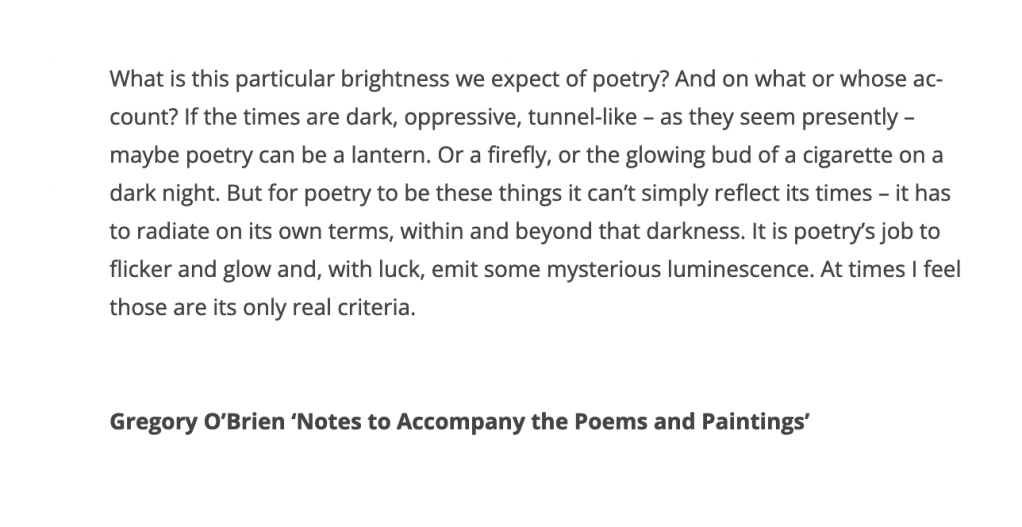 I also read and loved Gregory O’Brien’s endnote in his new collection House & Contents where he says: