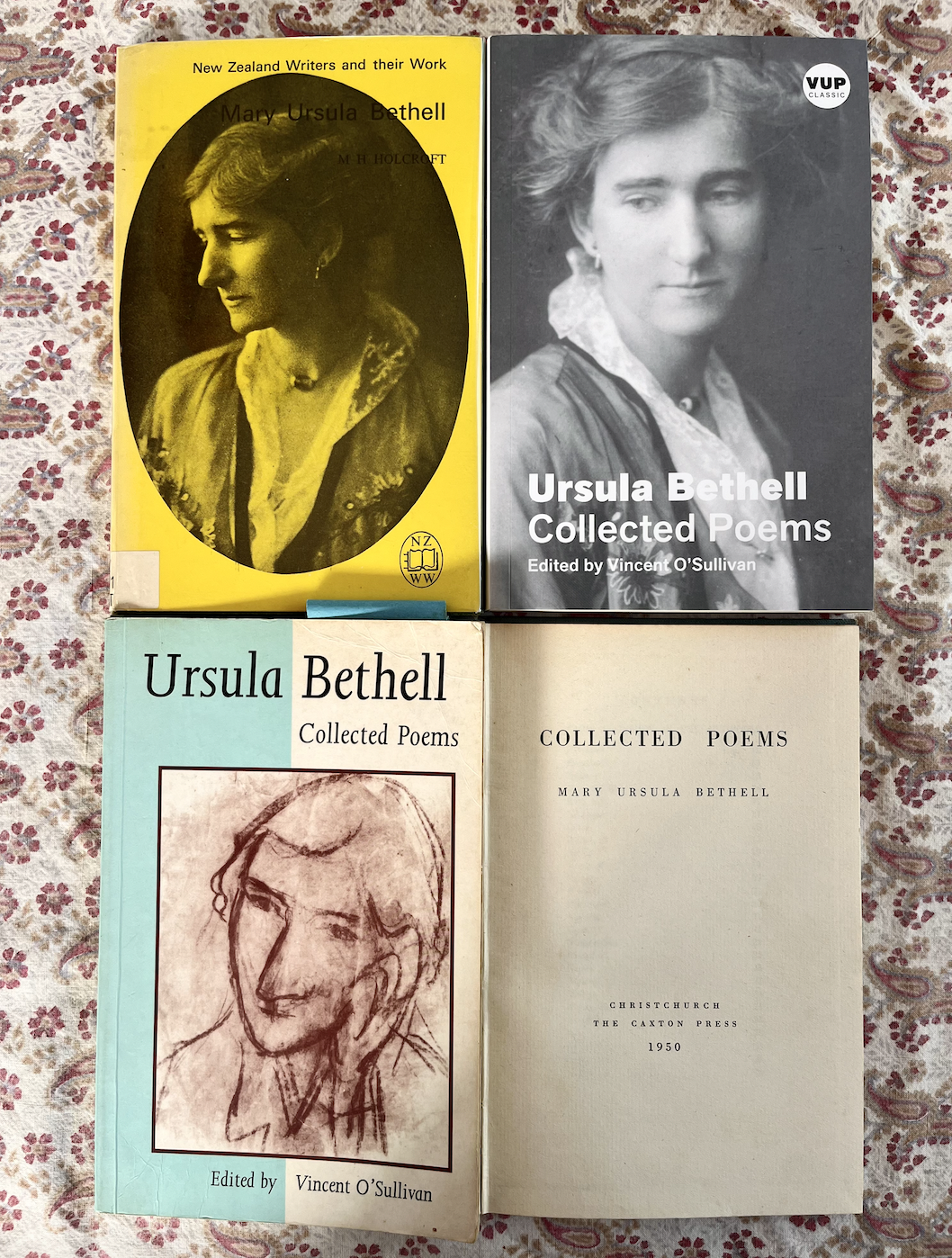 However, this version appears in Vincent O’Sullivan’s Ursula Bethell: Collected Poems (Victoria University Press, 1997, reissued 2011, 2021). Vincent explains in his endnote why the 1997 anthology includes corrections. The poem also appeared in Ursula’s Collected Poems (The Caxton Press, 1950).