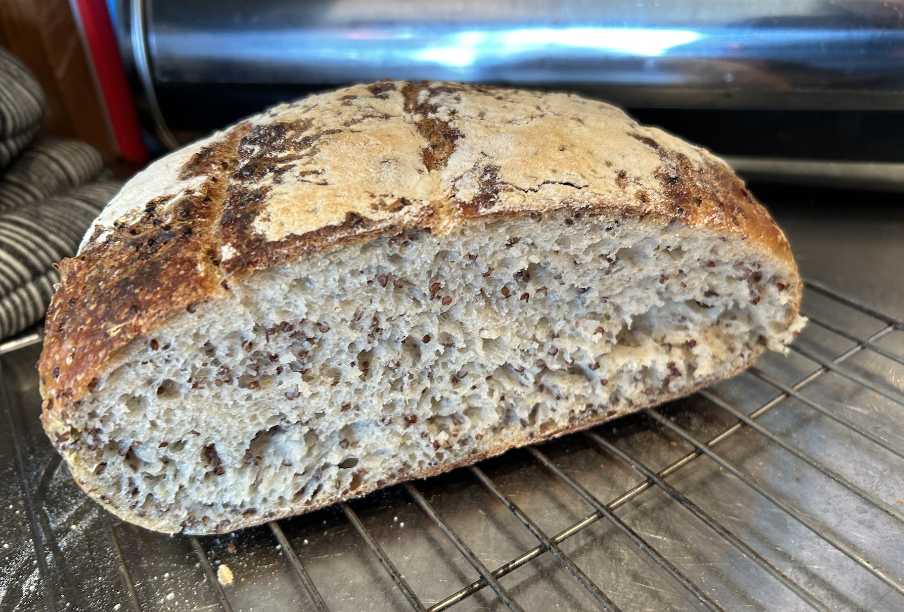 Ah. I have stack of poetry books on my desk to review – a towering pile because some days all I can do is listen to music or watch UK detective shows or bake Morning Glory Muffins (riffing off Harvest Wheat) or make sough dough bread with red quinoa (my latest version so yum!!).