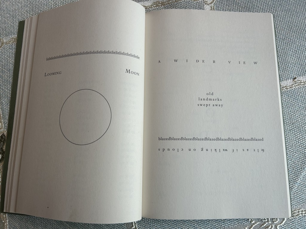 There are five distinct sections: a prelude, the archival borrowings, concrete poems, correspondence quotations, an appendix and a coda. Haunting movement on the page. Haunting travel in the mind. Resonant travel in the heart.