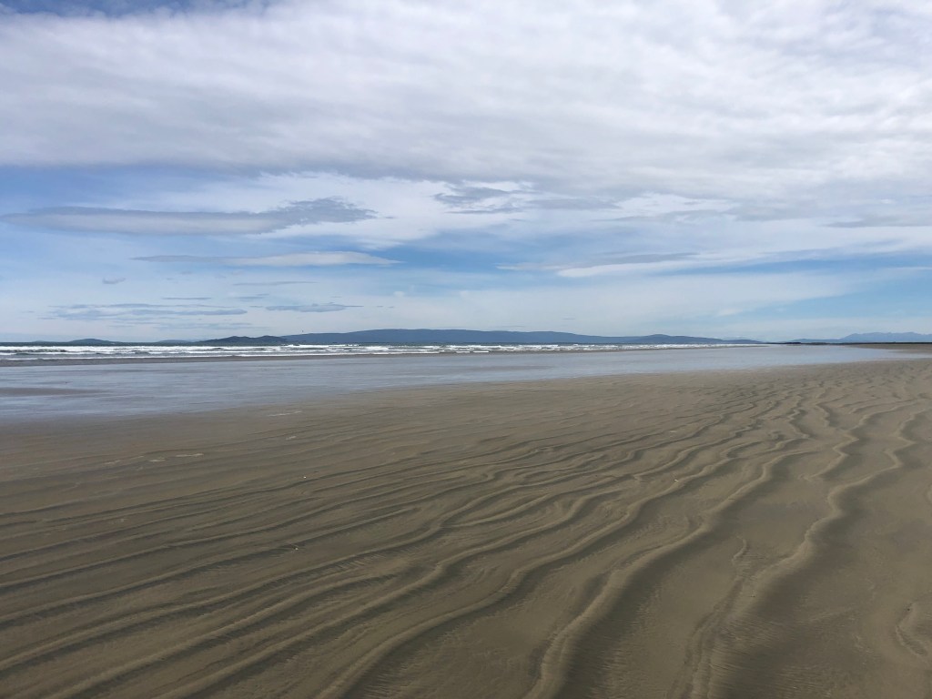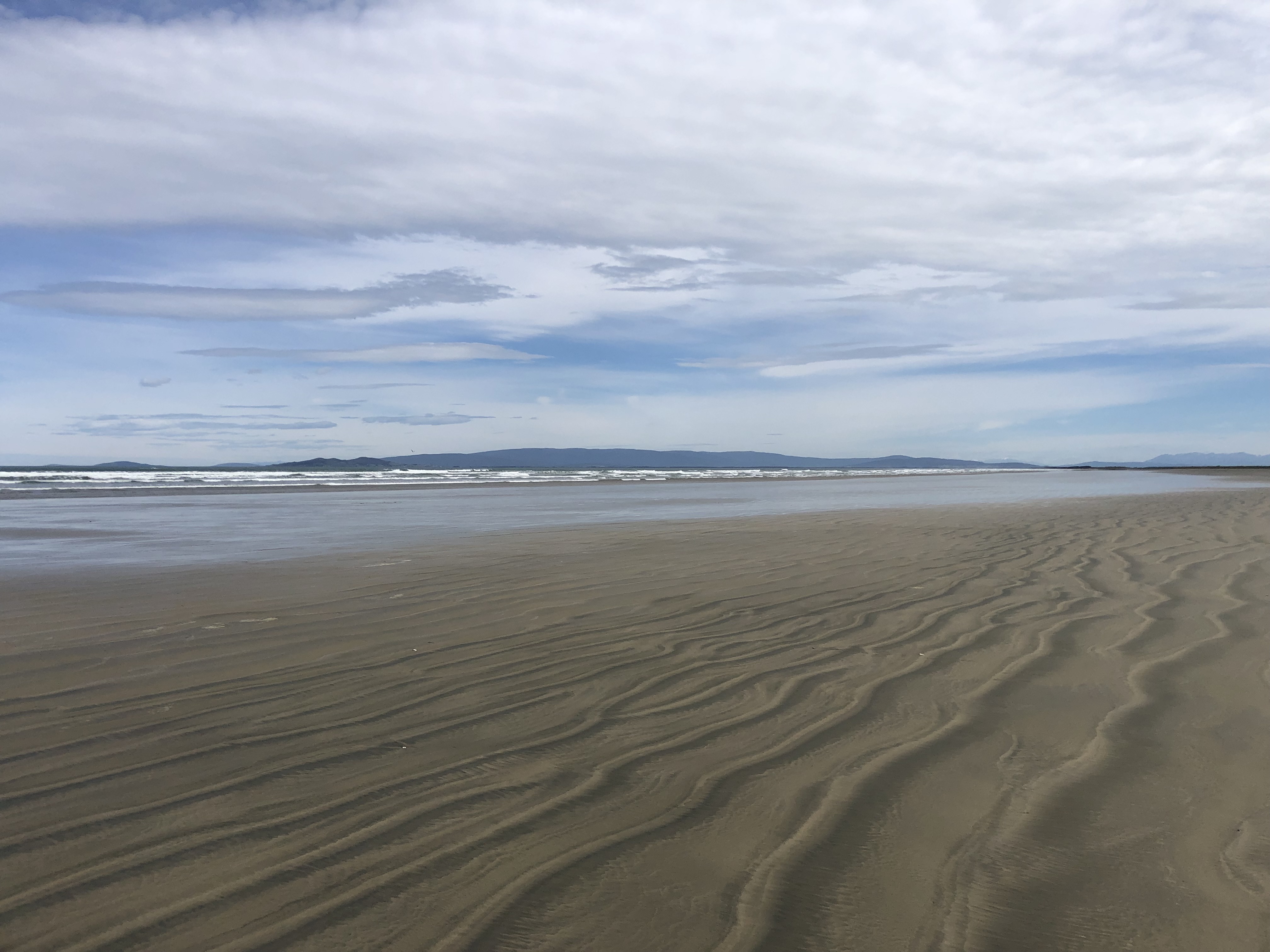 The beach is a long wing, of course you like it; the waves blue, white crests blown apart by wind, the sand tawny and firm. But now you have to walk it as if this is a sentence, for seven hours, actually, until you turn from the jauntiness of one step after another, like hope in the future, which is possibly why you’re doing this, until about the| six hour point it all becomes pain. The thigh bone connected to the| knee bone, intimately. There is nothing to be done about the future now, except keep walking. No-one will save you. Only the memory at five hours when the young tattooed builder from Western Australia, who has caught up to your stride, stops to swim in the lolloping waves. You are longing, you are longing to, also. You won’t regret it, he says. You take off your clothes on a public beach. You don’t regret it.