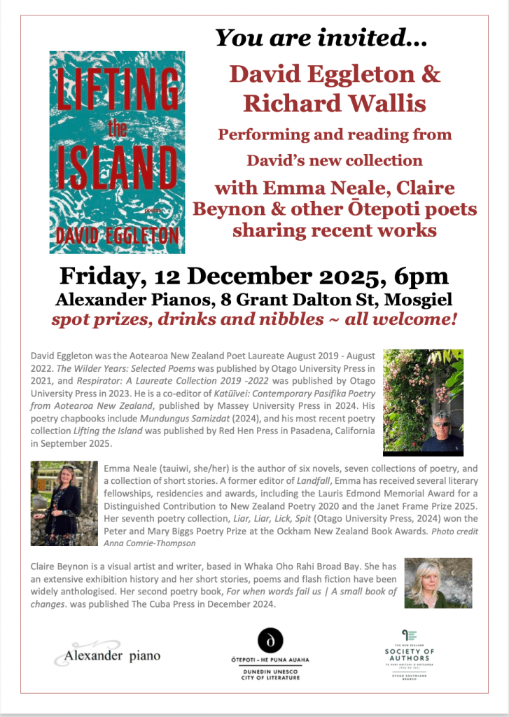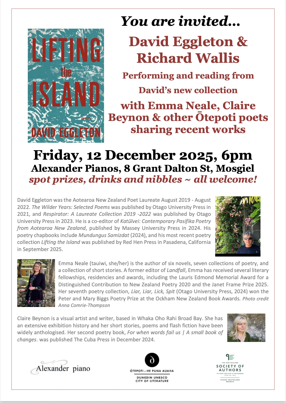 As Laureate David Eggleton observed after the reading, it did indeed feel like an historic moment. And a precious one.