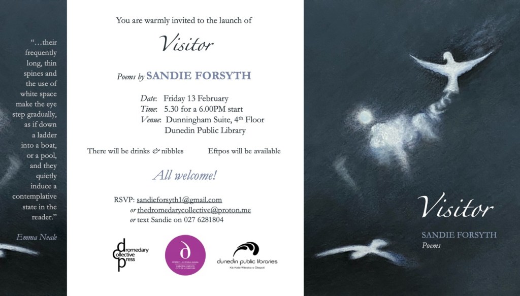 ‘Visitor’ will be launched TONIGHT at the Dunedin City Library 5.30pm.