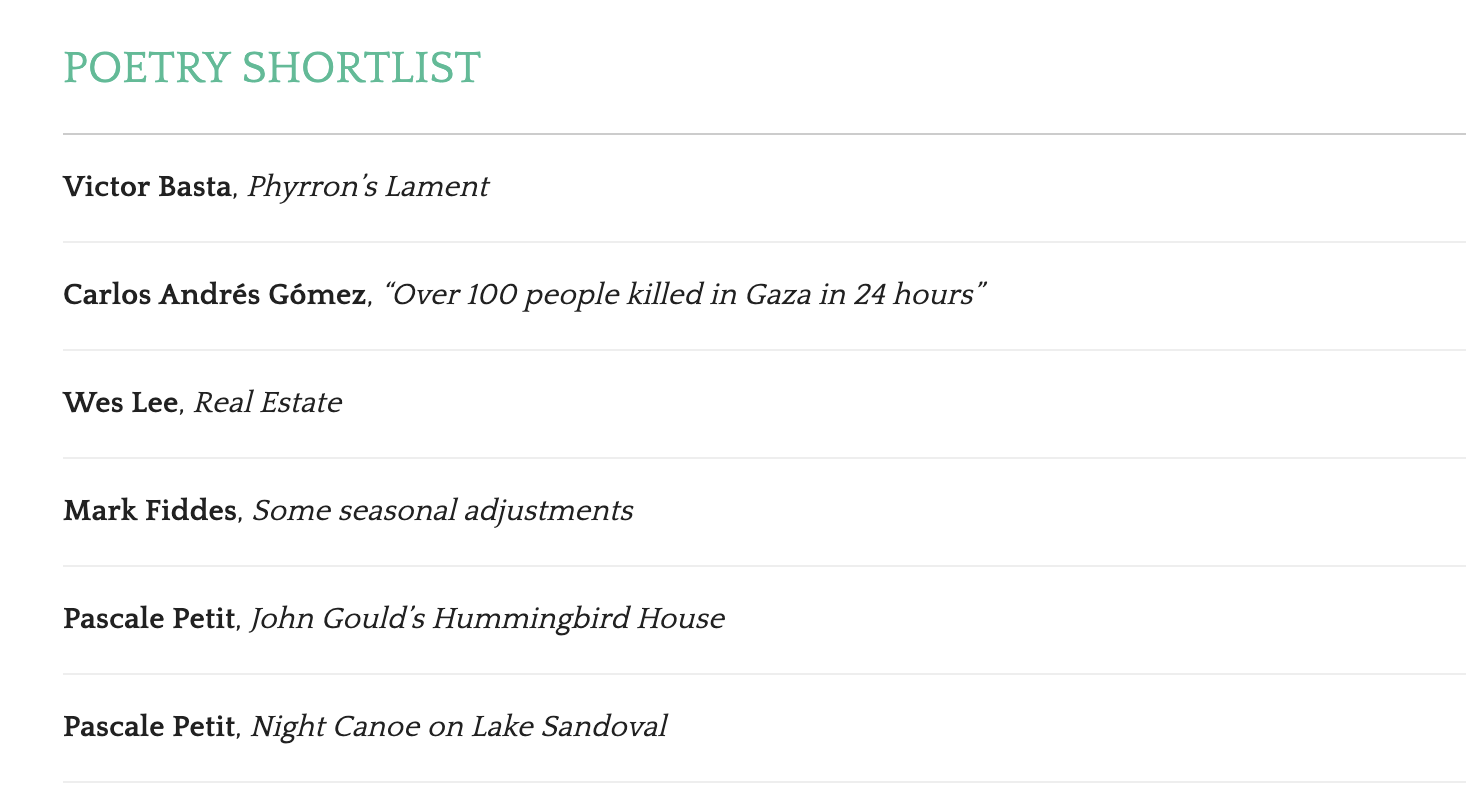 Wes Lee, has been shortlisted for The Keats-Shelley Poetry Prize 2025 – 2026, in London.