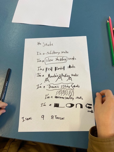 to do a two-hour poetry workshop with local children and their mothers and get them all zinging and shining with poems (will be posting poems from this on Poetry Box soon)