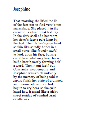 Paula’s note: I love the way this poem grapples with the elusiveness of words, building in momentum from that point in the bone to that point in the throat. Inventive. Surprising. The elusive moments/notions/images glint as they escape. The ending shifts the pitch of the poem and delivers, for me, a moment of poignancy. I love this.